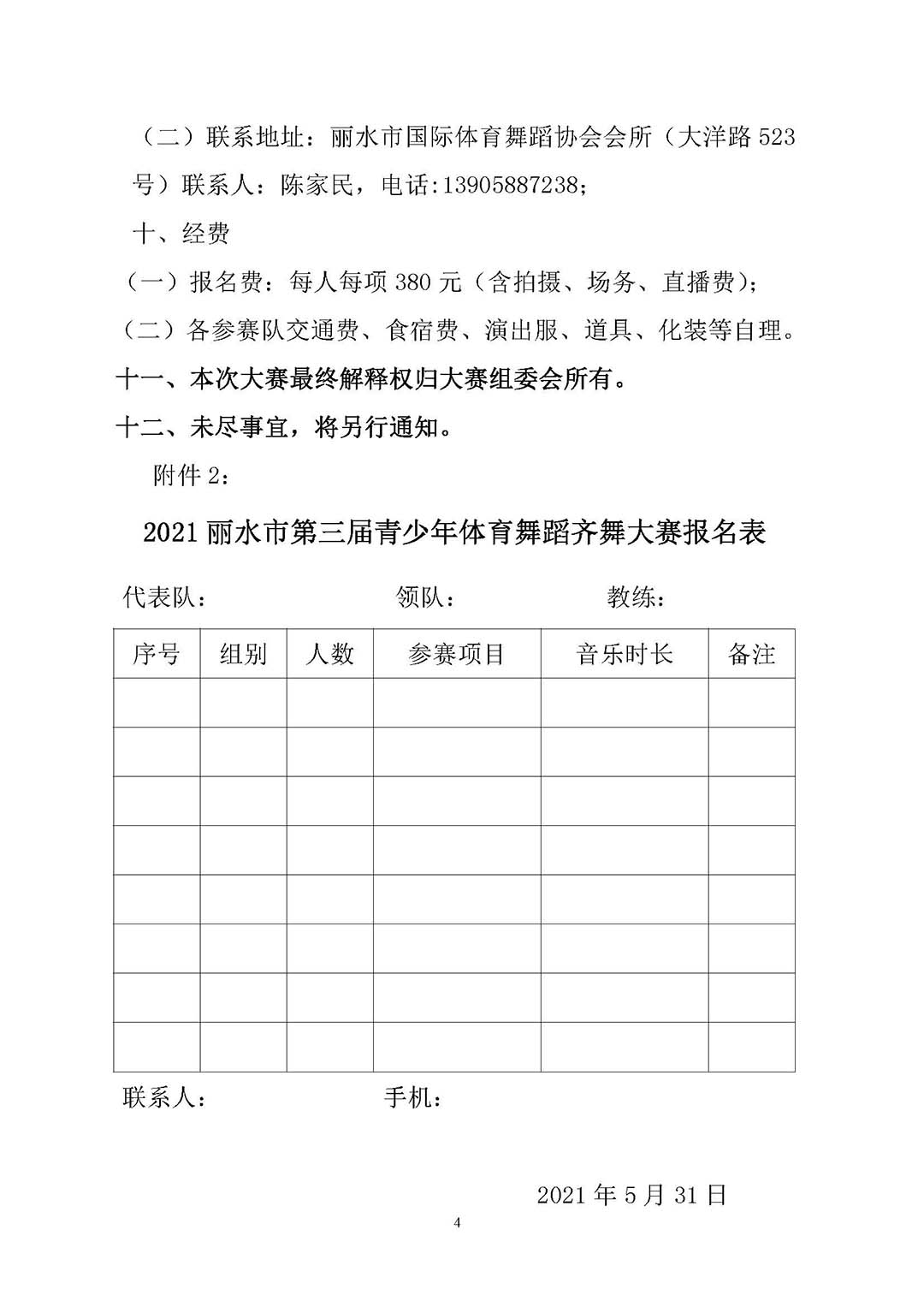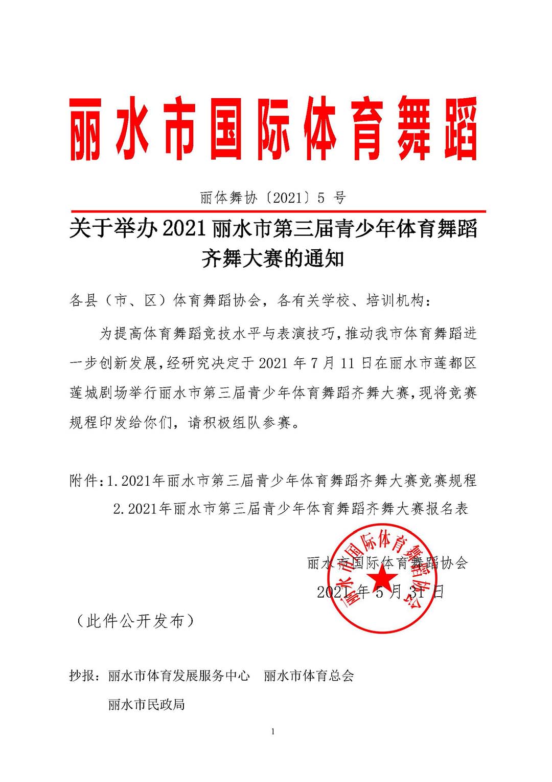 关于举办2021丽水市第三届青少年体育舞蹈齐舞大赛的通知
