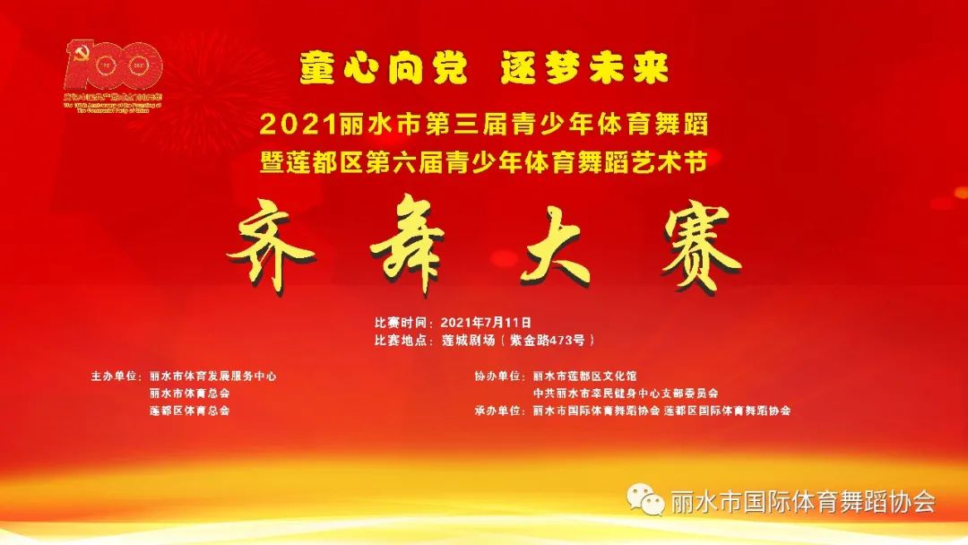 2021年7月11日,丽水市第三届青少年体育舞蹈齐舞大赛暨莲都区第六届青少年体育舞蹈艺术节齐舞大赛在丽水市莲城剧场隆重举行。