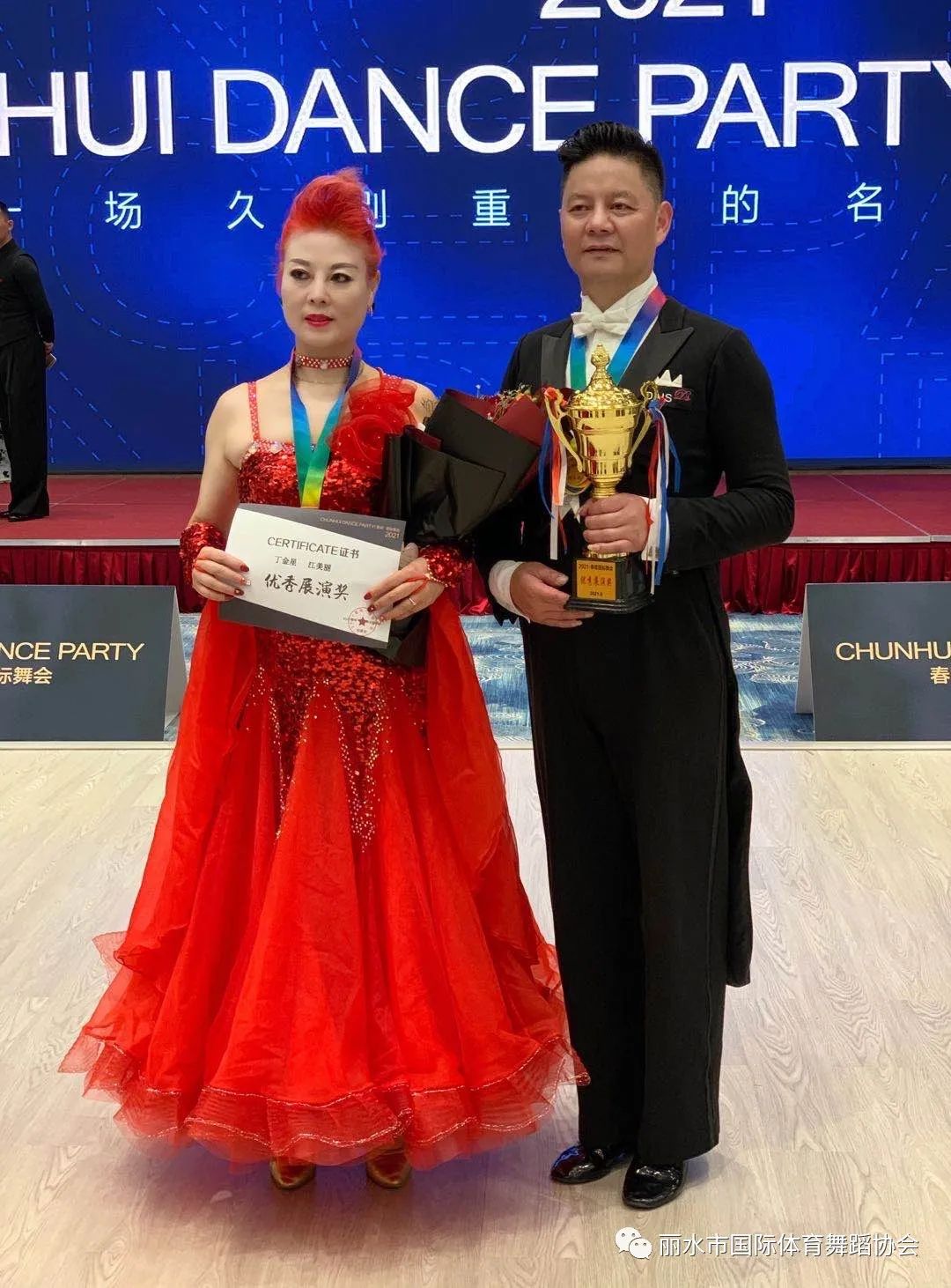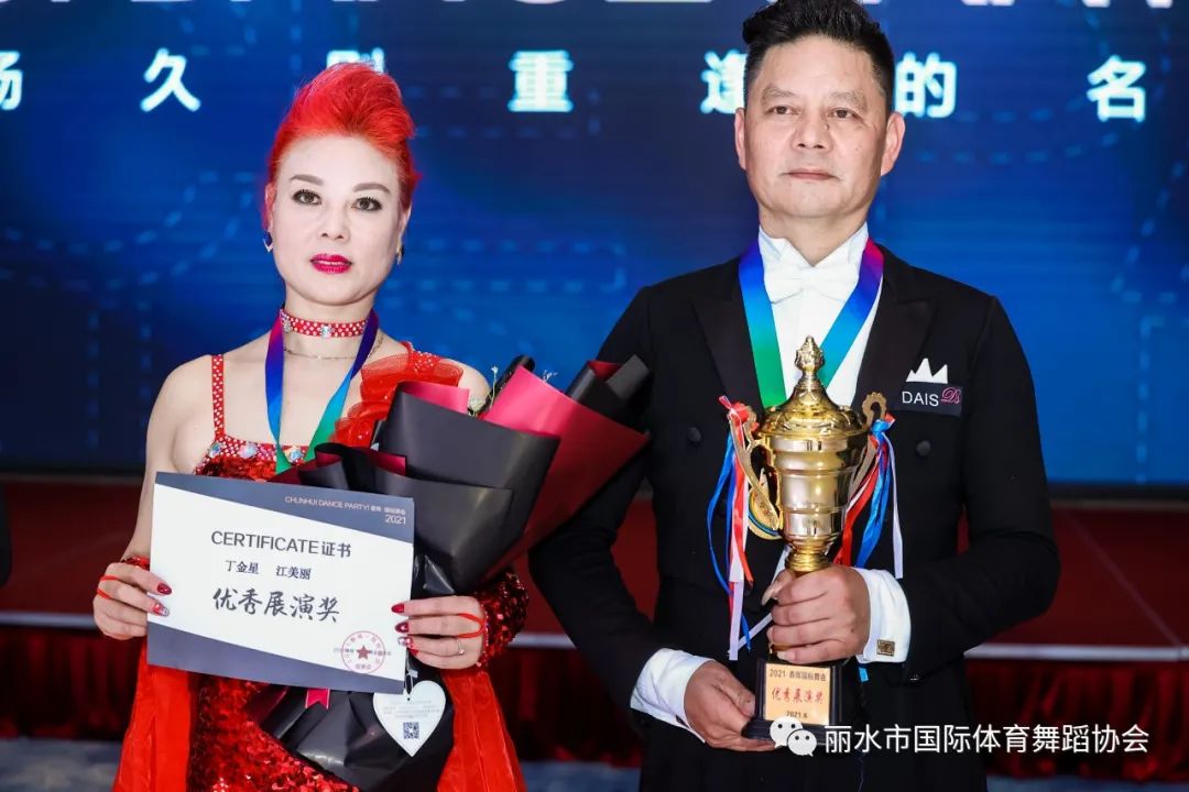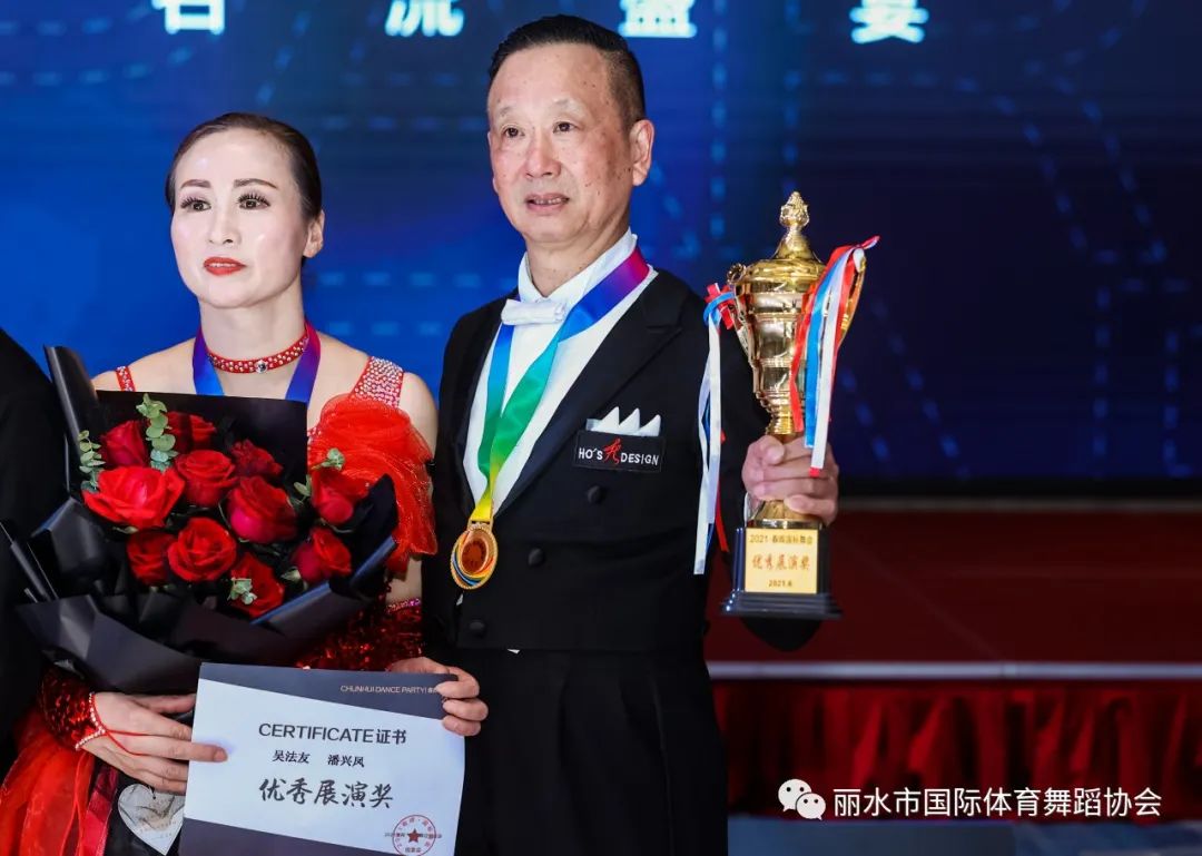 为提升选手竞技能力,丽水市舞蹈协会组织了12名先进骨干参加了本次高规格的培训学习,其中三对选手参加了晚上的展演,获得优秀展演奖。
