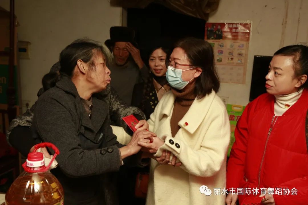 2022年1月5日,丽水市国际体育舞蹈协会党支部与市幸民健身中心党支部(一行5人),前往缙云县大源镇稠门一村看望留守特困的聋、哑、盲老人李中秋。