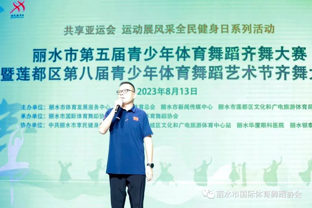 共享亚运会 运动展风采 | 2023丽水市第五届青少年体育舞蹈齐舞大赛暨莲都区第八届青少年体育舞蹈艺术节齐舞大赛圆满落幕 发表评论 / 赛事速报 / 作者: 丽水市国际体育舞蹈协会 2023年8月13日,丽水市第五届青少年体育舞蹈齐舞大赛暨莲都区第八届青少年体育舞蹈艺术节齐舞大赛在丽水电视台630演播厅隆重举行。 本次大赛由丽水市体育发展服务中心、丽水市体育总会、丽水市新闻传媒中心、丽水市莲都区文化和广电旅游体育局主办;丽水市国际体育舞蹈协会、莲都区国际体育舞蹈协会承办;中共丽水市幸民健身中心委员会、莲都区城区文化和广电旅游体育中心站、丽水华厦眼科医院、丽水银泰城协办。 丽水市体育发展服务中心党组成员、市体育总会专职副主席马莹华宣布比赛开幕 获奖选手赛场风采