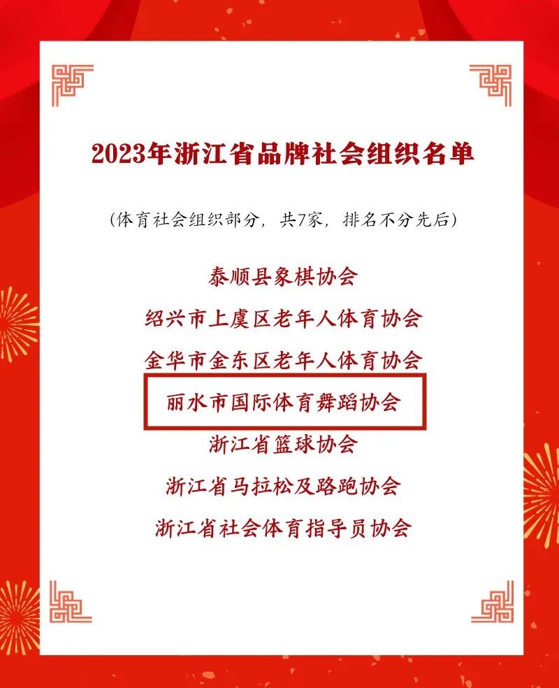 喜报!丽水市国际体育舞蹈协会获评2023年浙江省品牌社会组织,成“全省品牌”