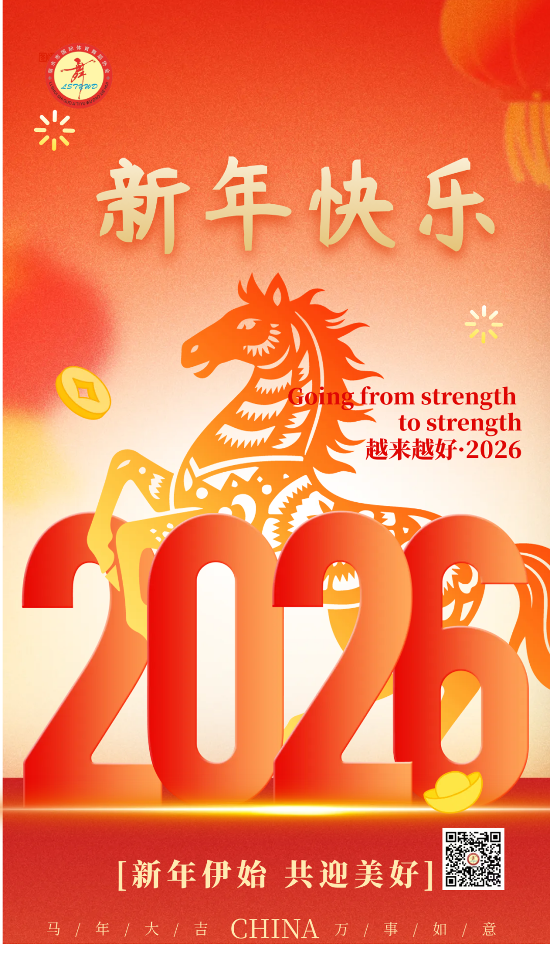 律回春晖渐,万象始更新。值此2026年新年到来之际,丽水市国际体育舞蹈协会理事会全体成员,谨向长期关心支持协会发展的各级领导、社会各界朋友,向辛勤付出的舞蹈教师们,向每一位热爱体育舞蹈的会员与舞友,致以最诚挚的节日问候和最美好的新年祝福!