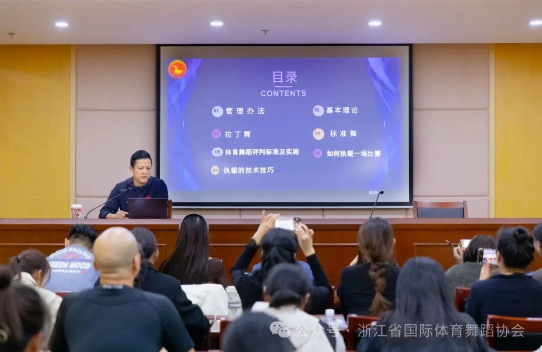 2024年11月5日-7日,浙江省国际体育舞蹈协会体育舞蹈裁判、教师(教练员)培训班在丽水市体育中心体育馆副馆举办。来自全省各地的290名裁判员、教师参加了本次培训。