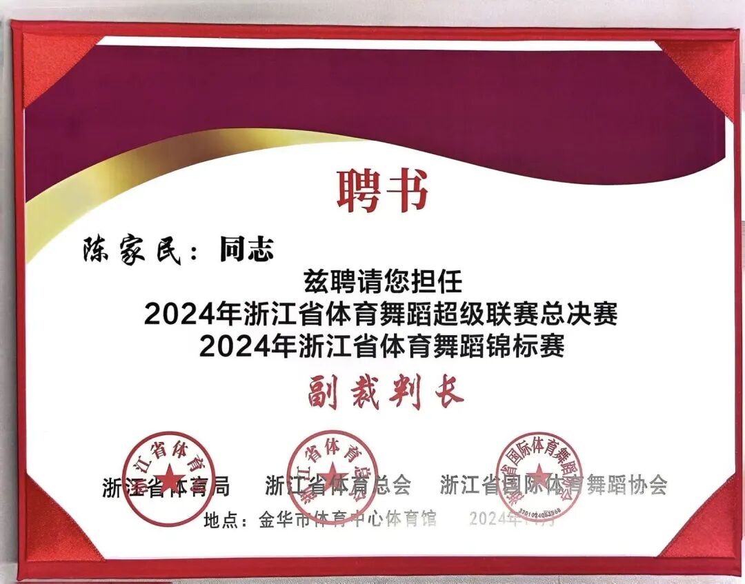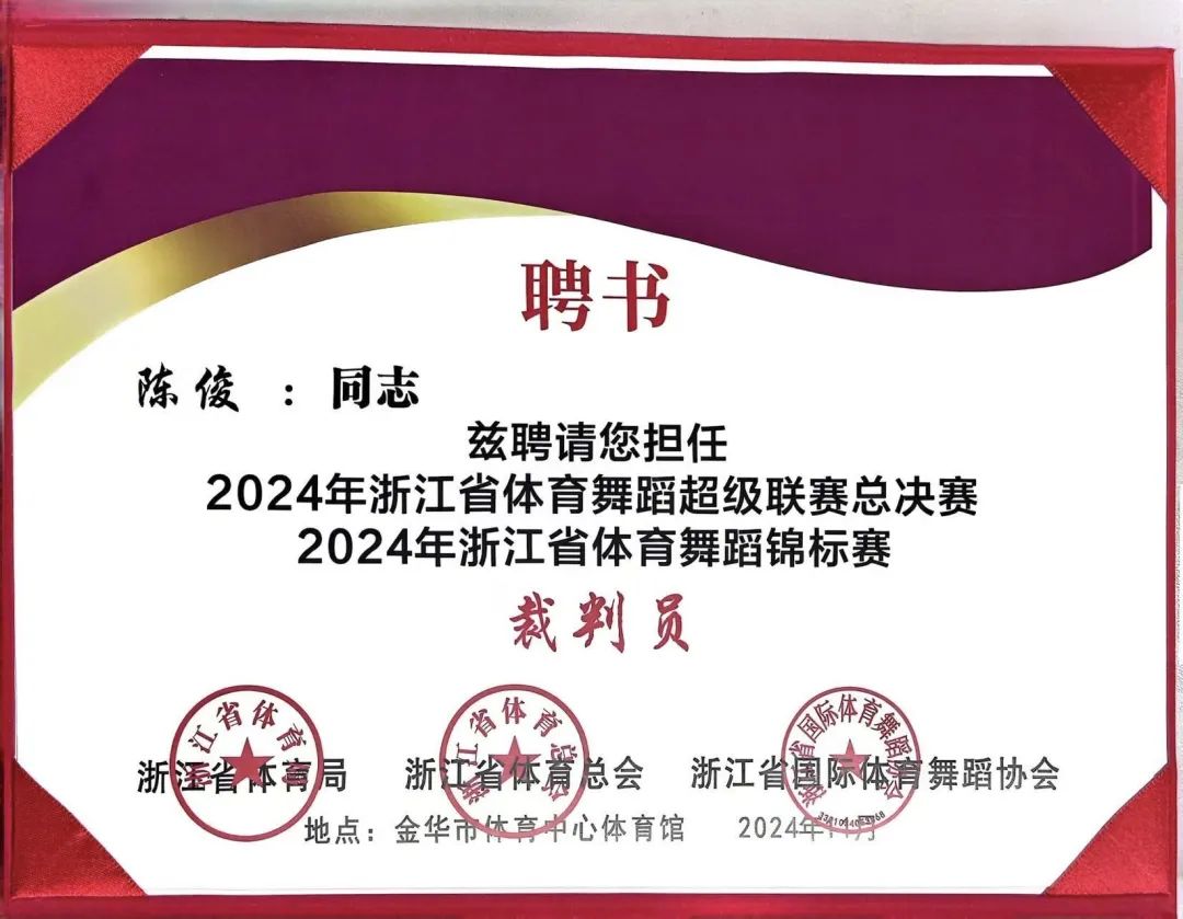 赛事期间,浙江省体育局、浙江省体育总会、浙江省国际体育舞蹈协会精心选拔了裁判主席团。