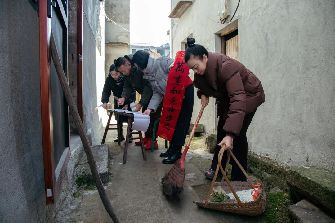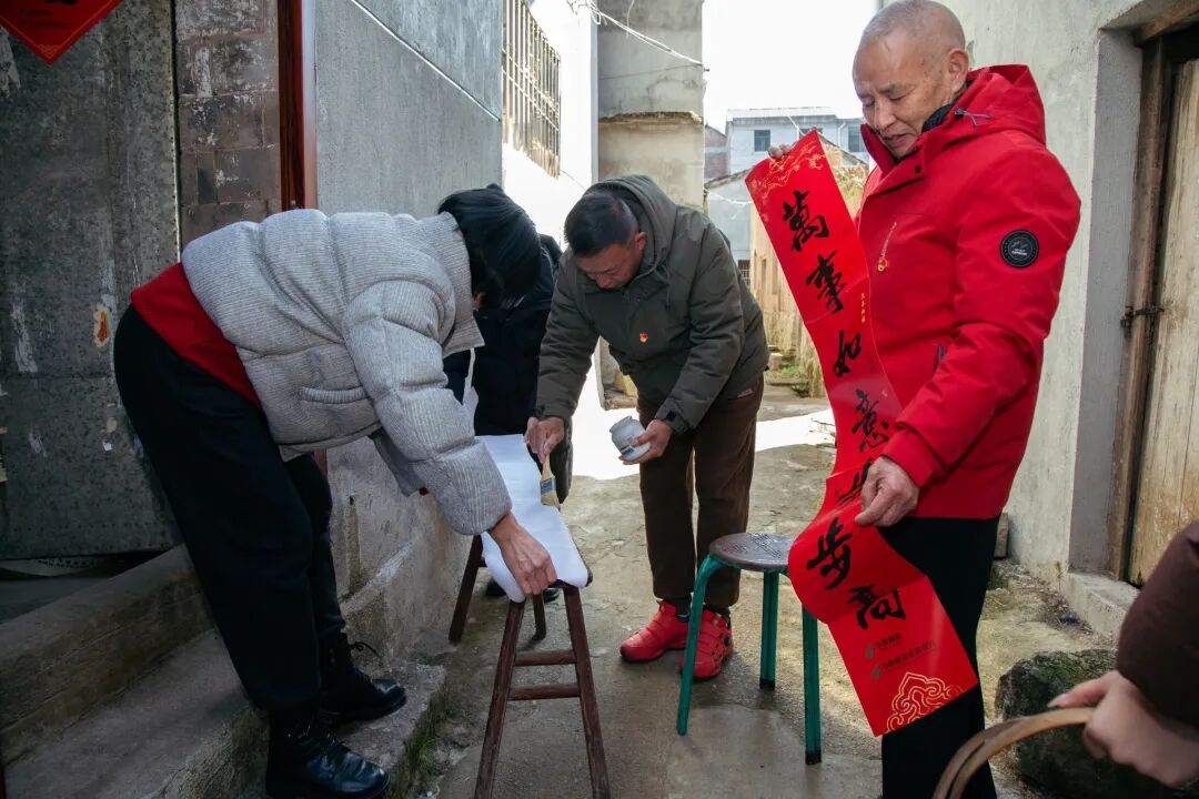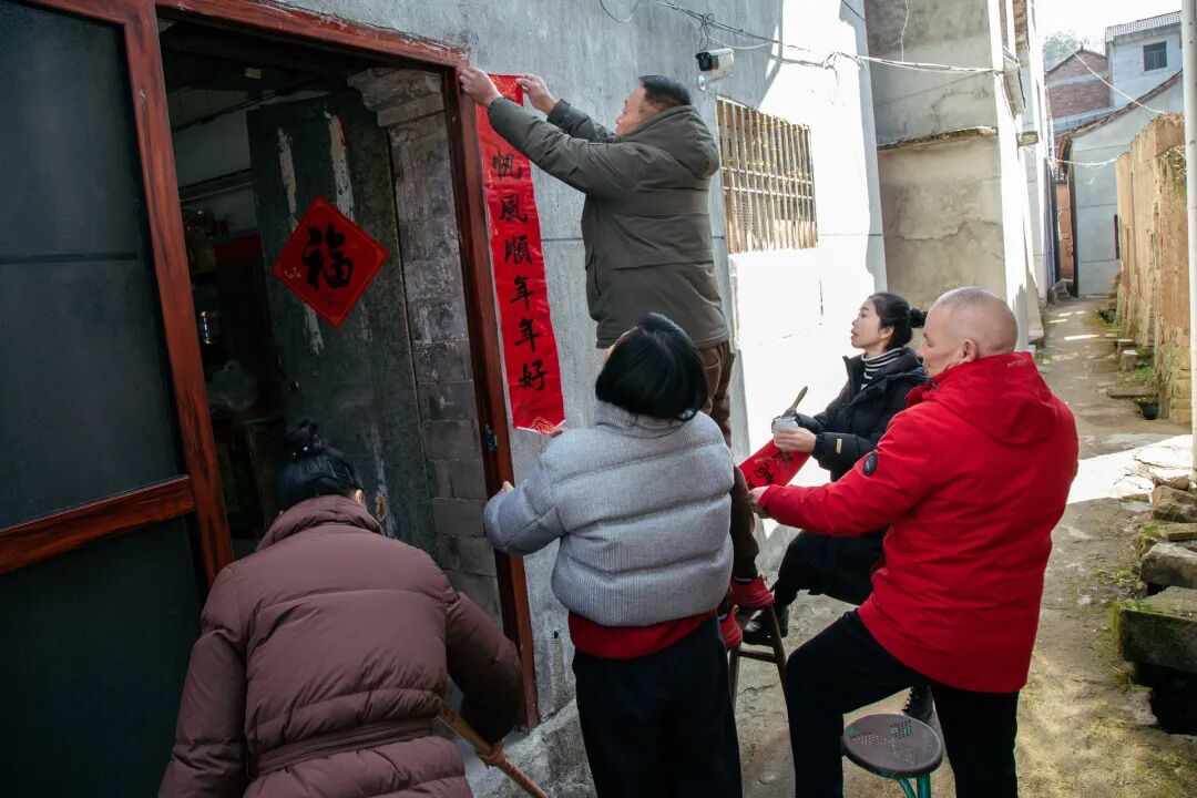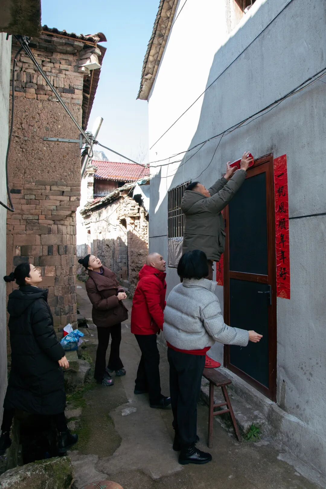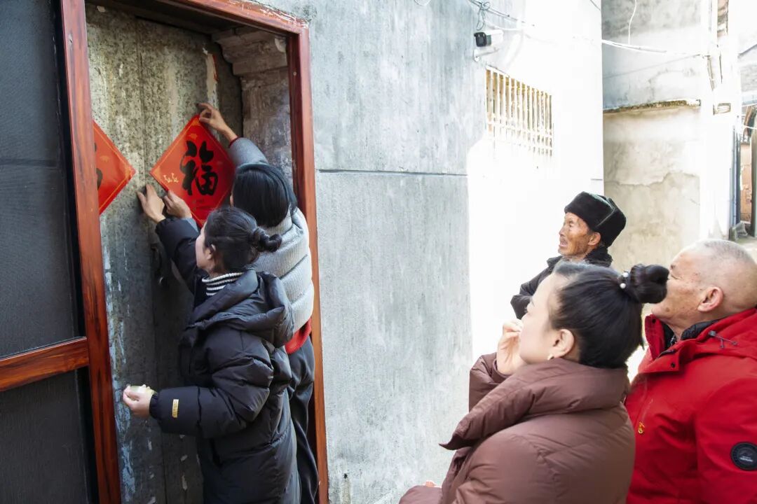 随后,服务小分队的成员们将带来的春联贴在李大妈家的大门上,并送上油、米、牛奶等生活必需品。
