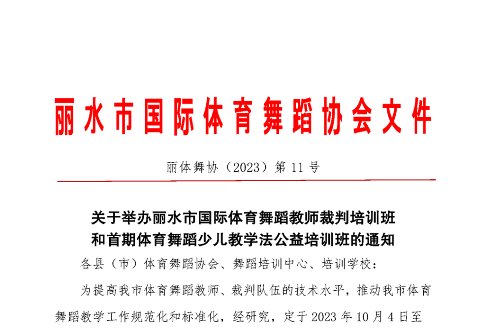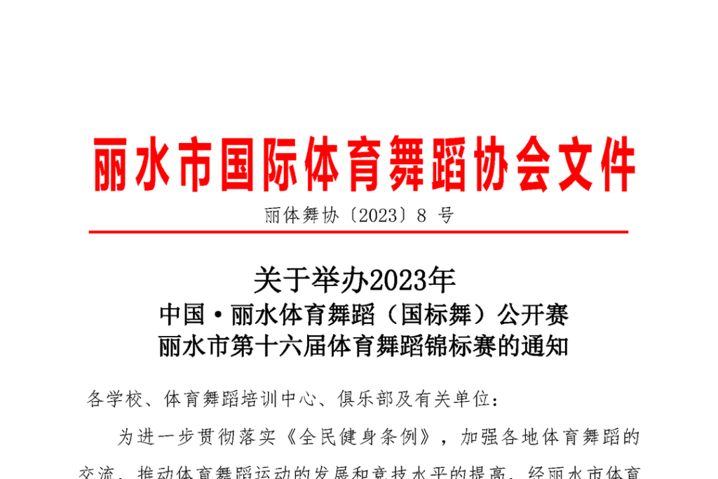关于举办2024年 中国·丽水体育舞蹈(国标舞)公开赛 丽水市第十七届体育舞蹈锦标赛的通知