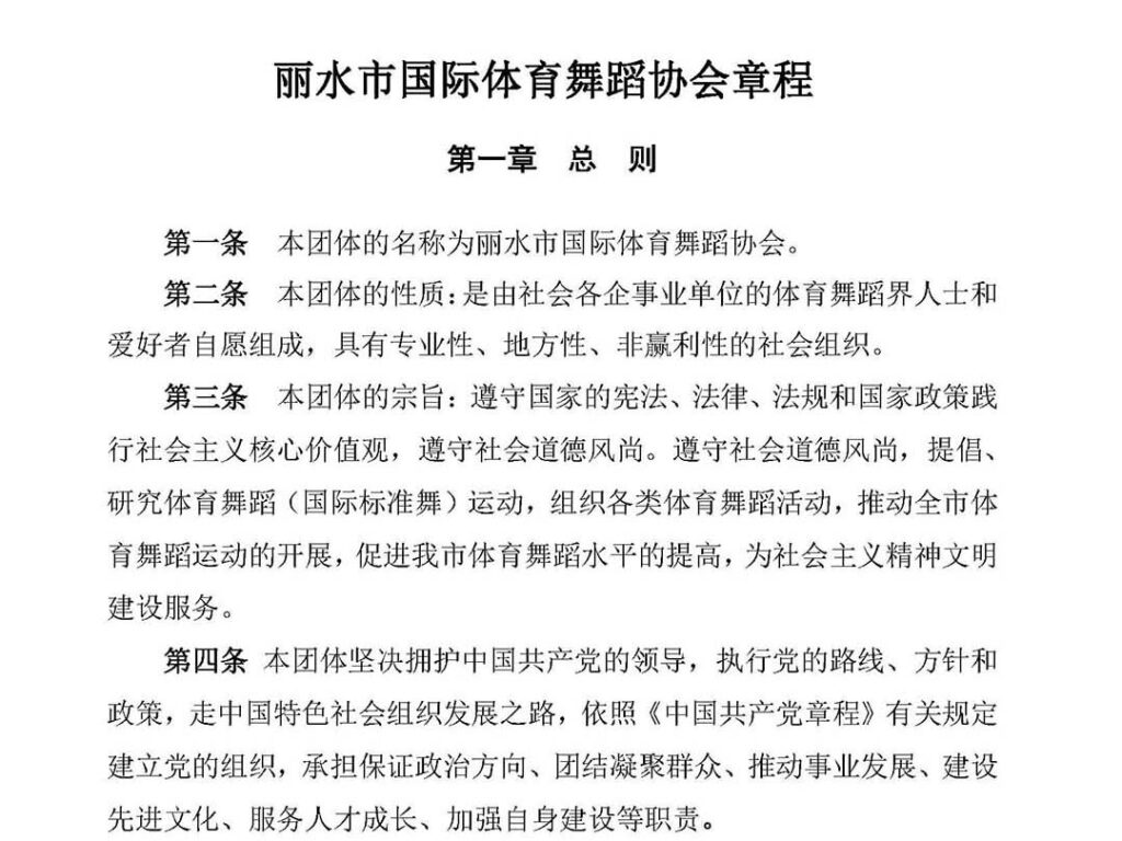 丽水市国际体育舞蹈协会章程