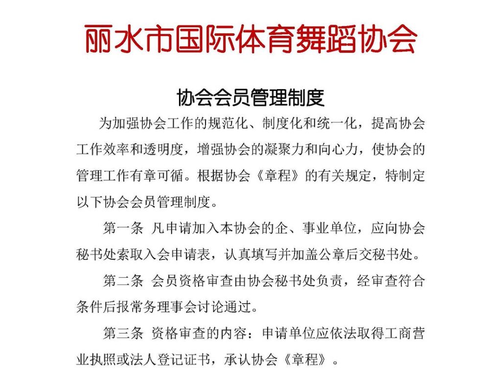 丽水市国际体育舞蹈协会会员管理制度